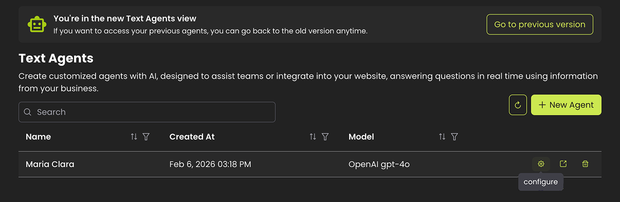 That's it, now your new agent is on the list of agents on the Text agents Section,\