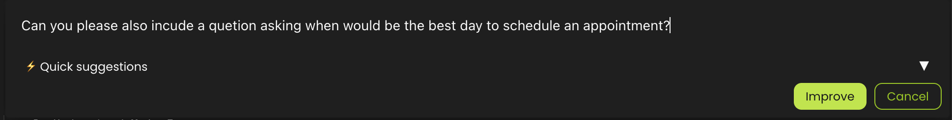 3. 💬 A prompt will ask how you’d like to improve it (e.g. clearer, friendlier, more concise). And click "Improve".