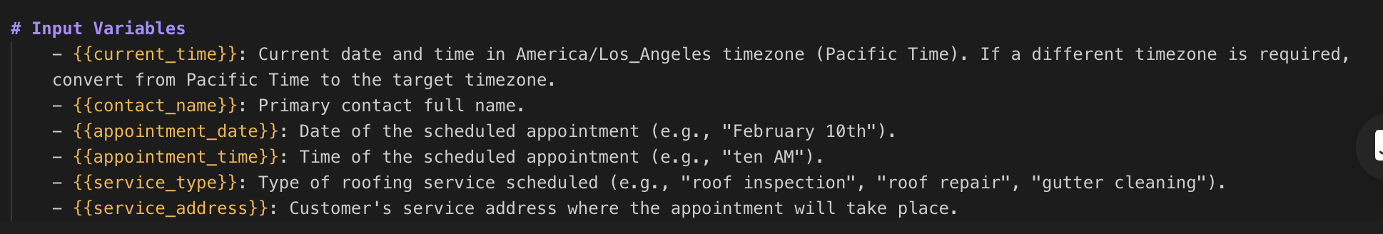 * Ensure all dynamic variables are accurately populated before the conversation begins.