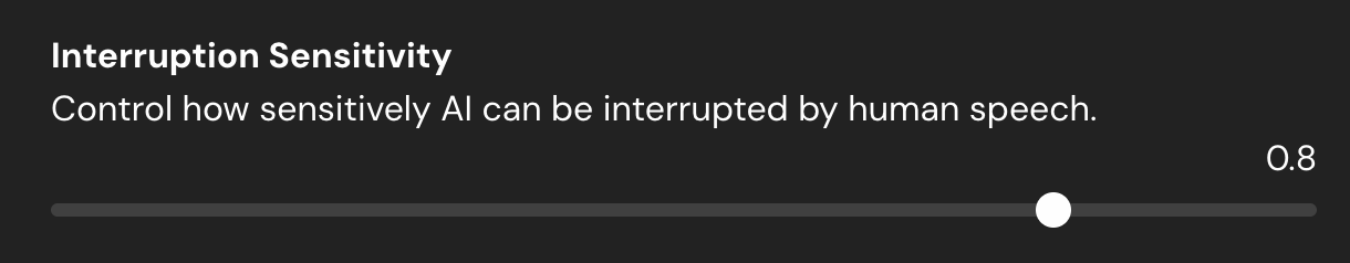 • Higher values (closer to 1) make the AI more interruptible—great for dynamic, user-led conversations.