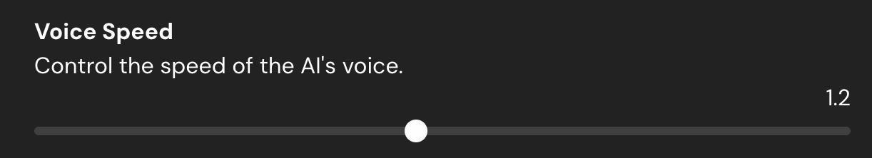 Adjust how quickly the AI speaks—faster for efficiency, slower for clarity. This setting fine-tunes pacing to match your use case, from rapid-fire support calls to thoughtful, deliberate conversations.