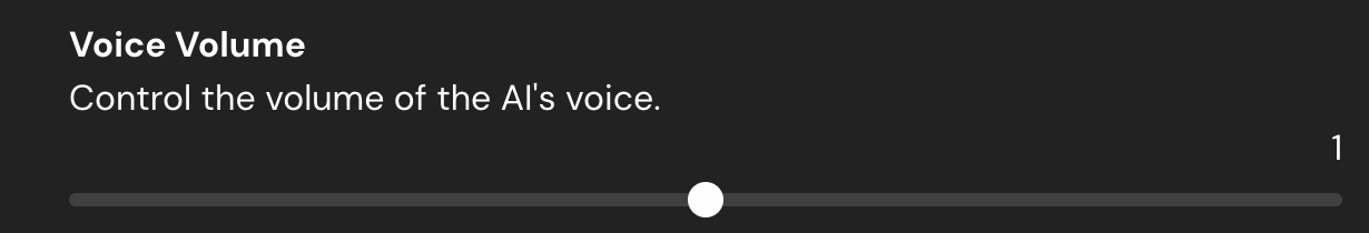 Voice Volume sets how loud or soft the AI sounds during a call. This controls gain—not energy or tone—so you can match the AI’s voice level to different environments, hardware setups, or user preferences.