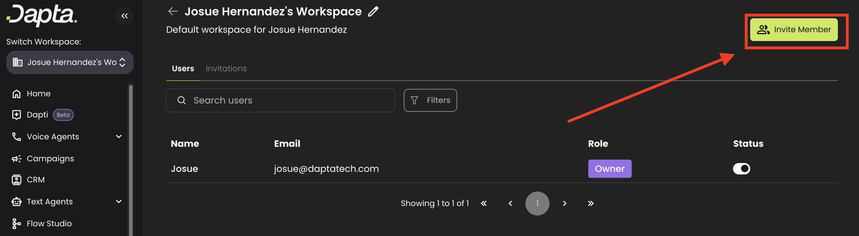 Enhance collaboration by inviting new members to your Dapta account, enabling efficient automation and teamwork. Here's how to get started.