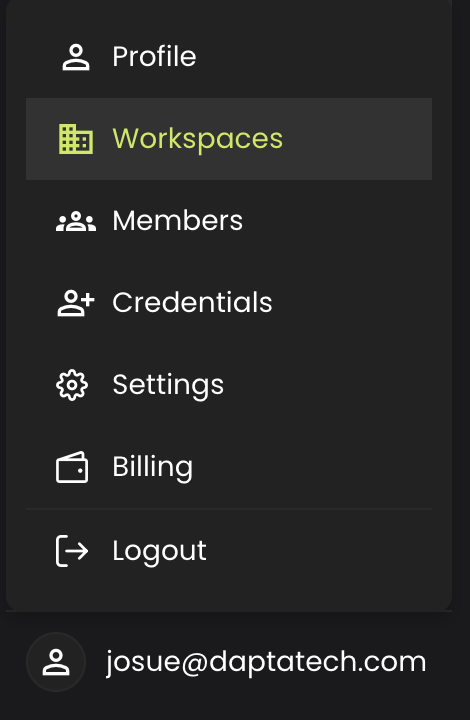 Click on your profile on the bottom-left corner of the screen and click on **Workspace**. This will take you to the **Workspace** overview page.
