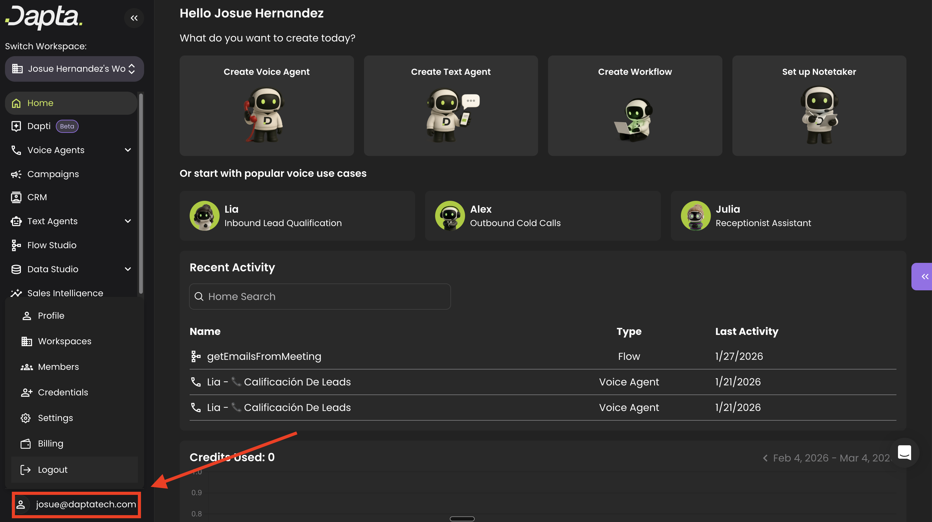 Once completed, save your **Workspace**. You’re now ready to start building workflows, agents and content inside Dapta.