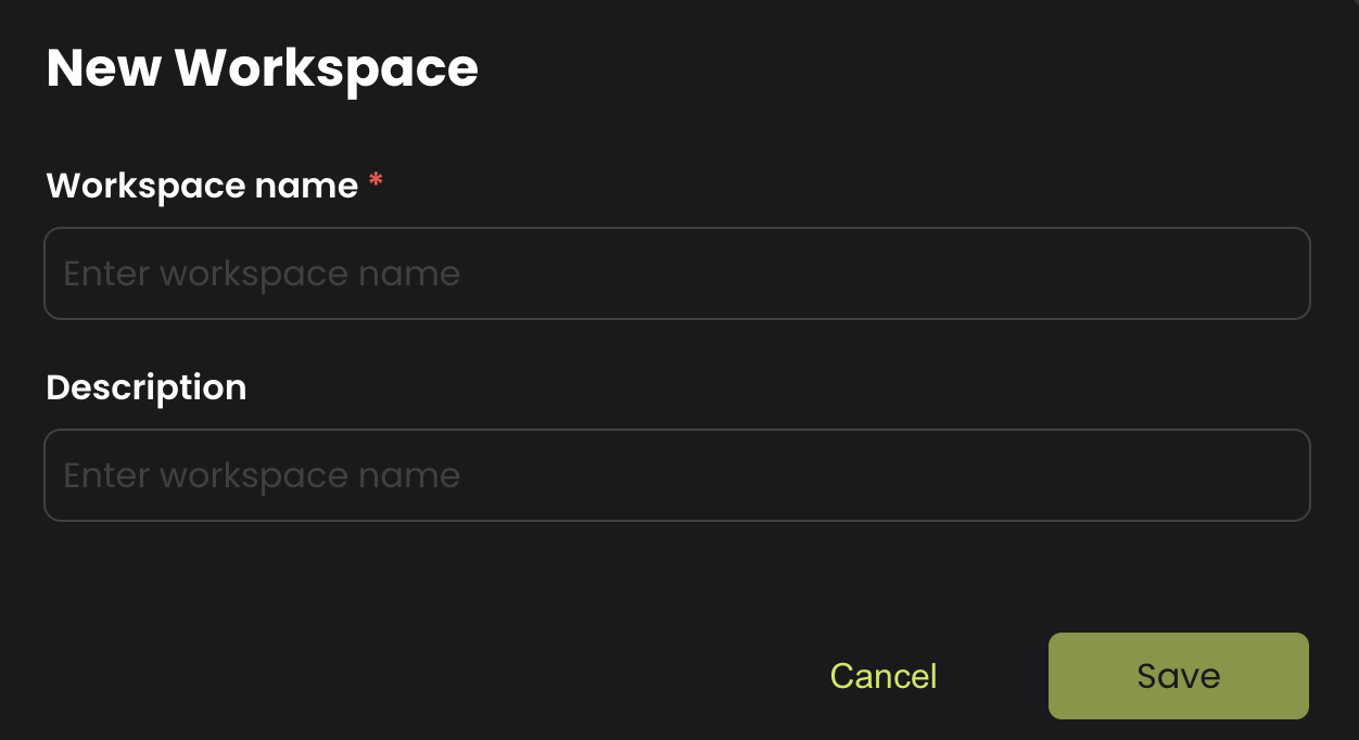 Fill in the required details for your new **Workspace**, such as: