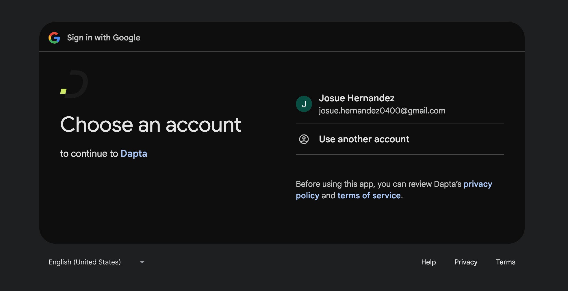 3. Now you can easily create an account in Dapta using google sign in. Just click in continue with Google.