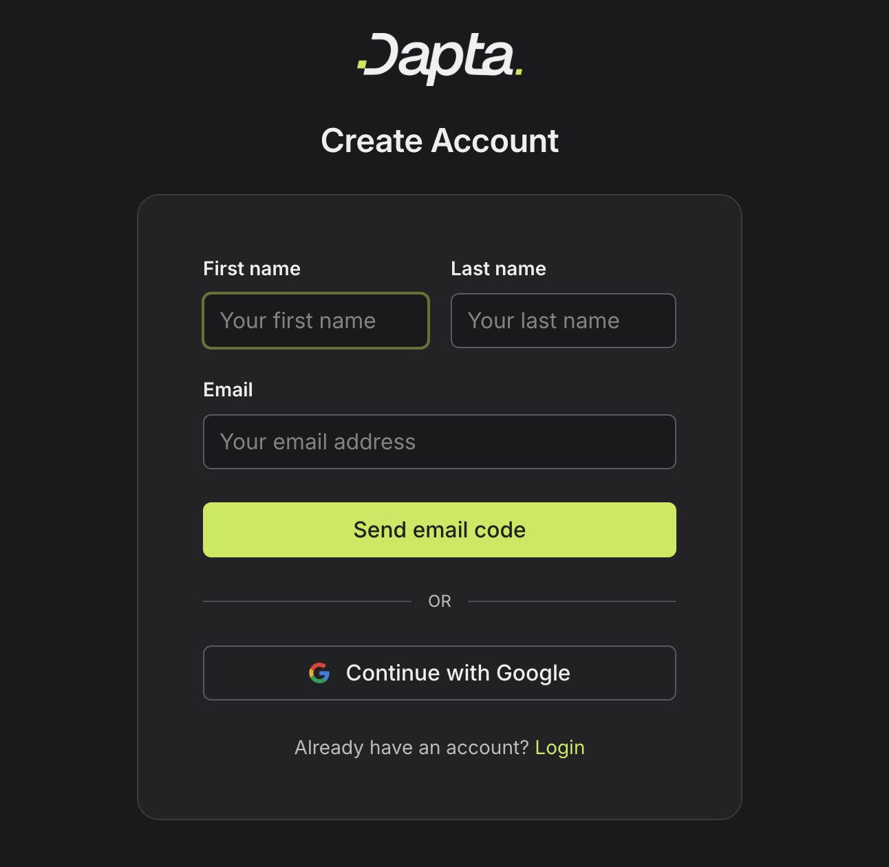 1. Go to [dapta.ai](https://www.dapta.ai/)