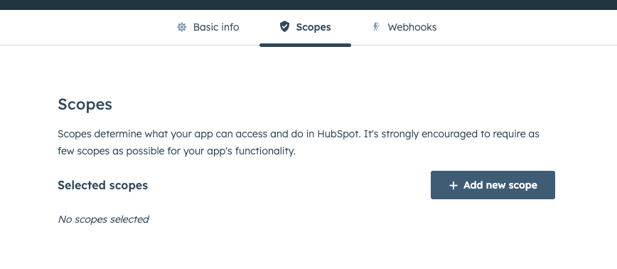 Dapta requires specific scopes to ensure seamless integration with HubSpot. Below is the list of **recommended scopes** that enable essential CRM functionalities such as managing contacts, companies, and deals.\